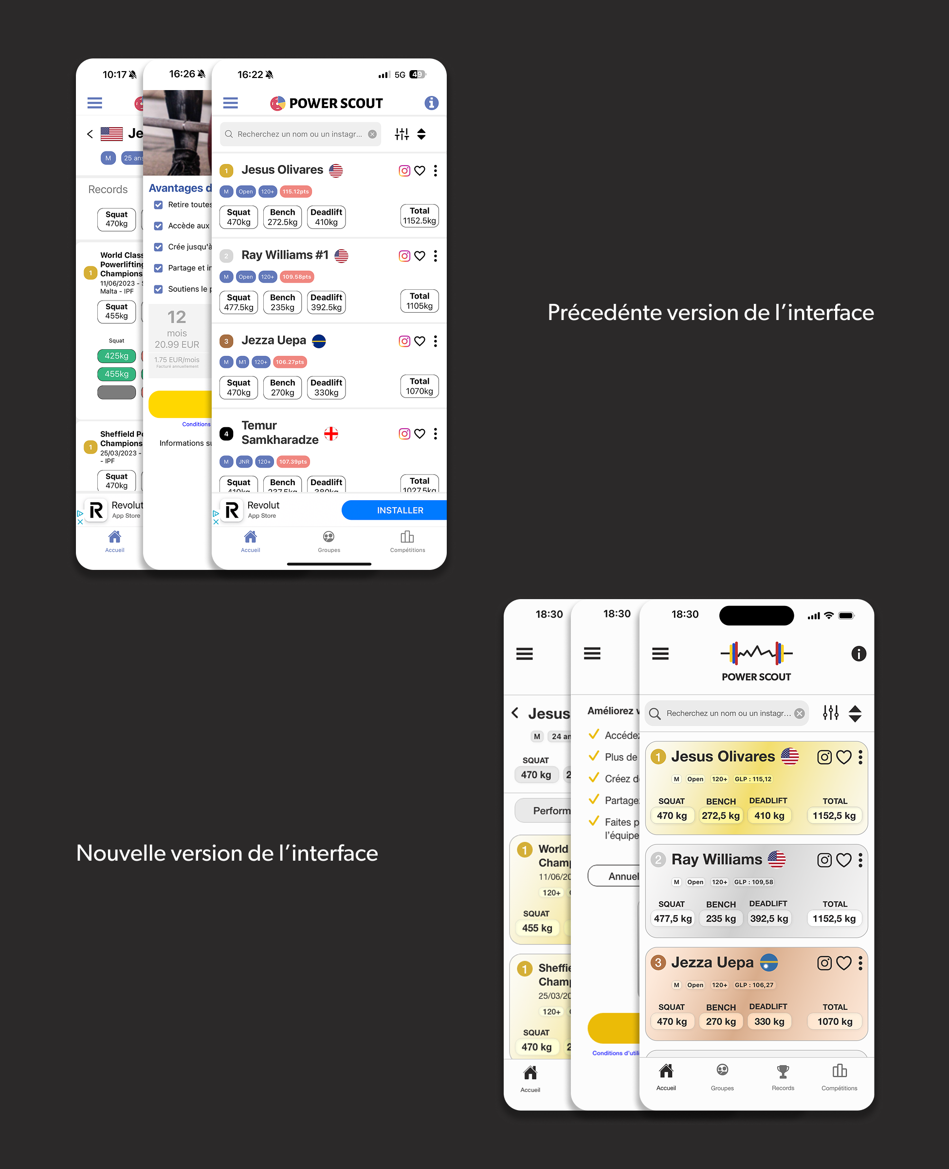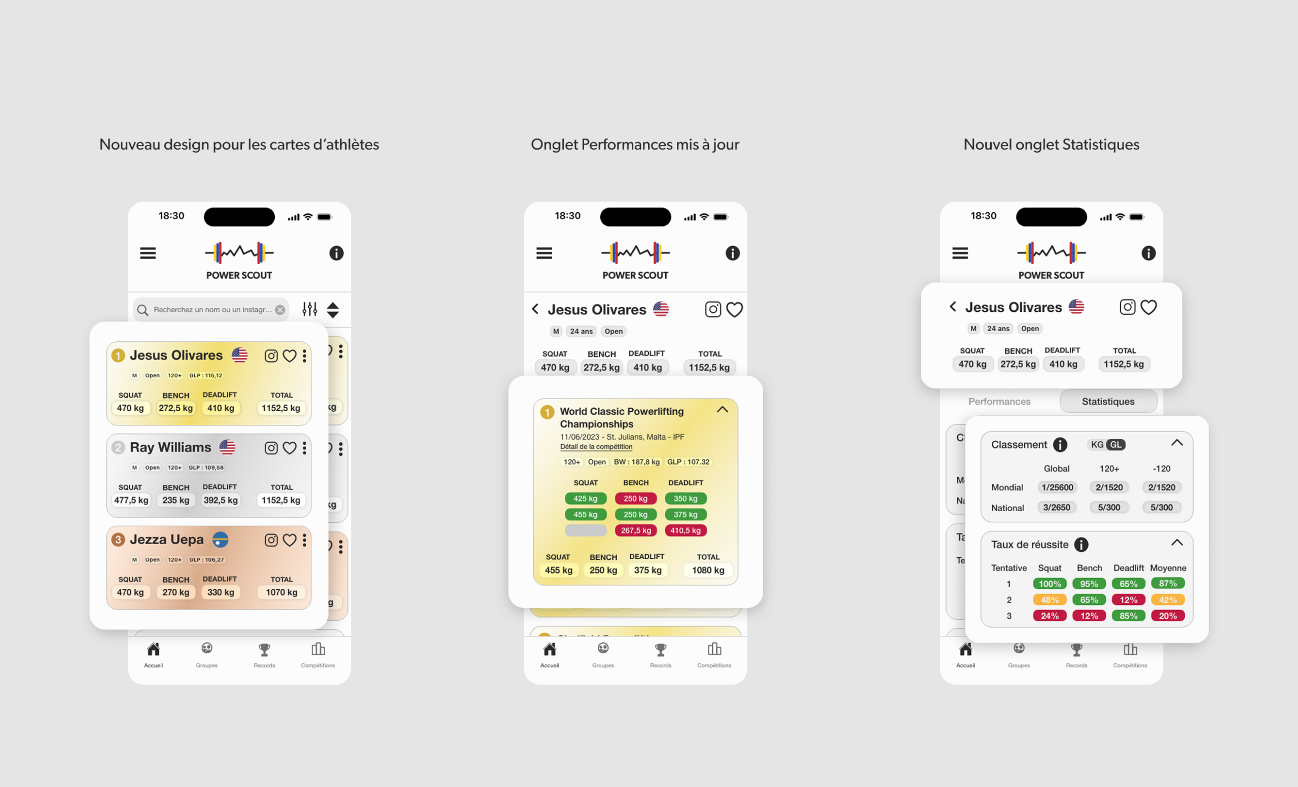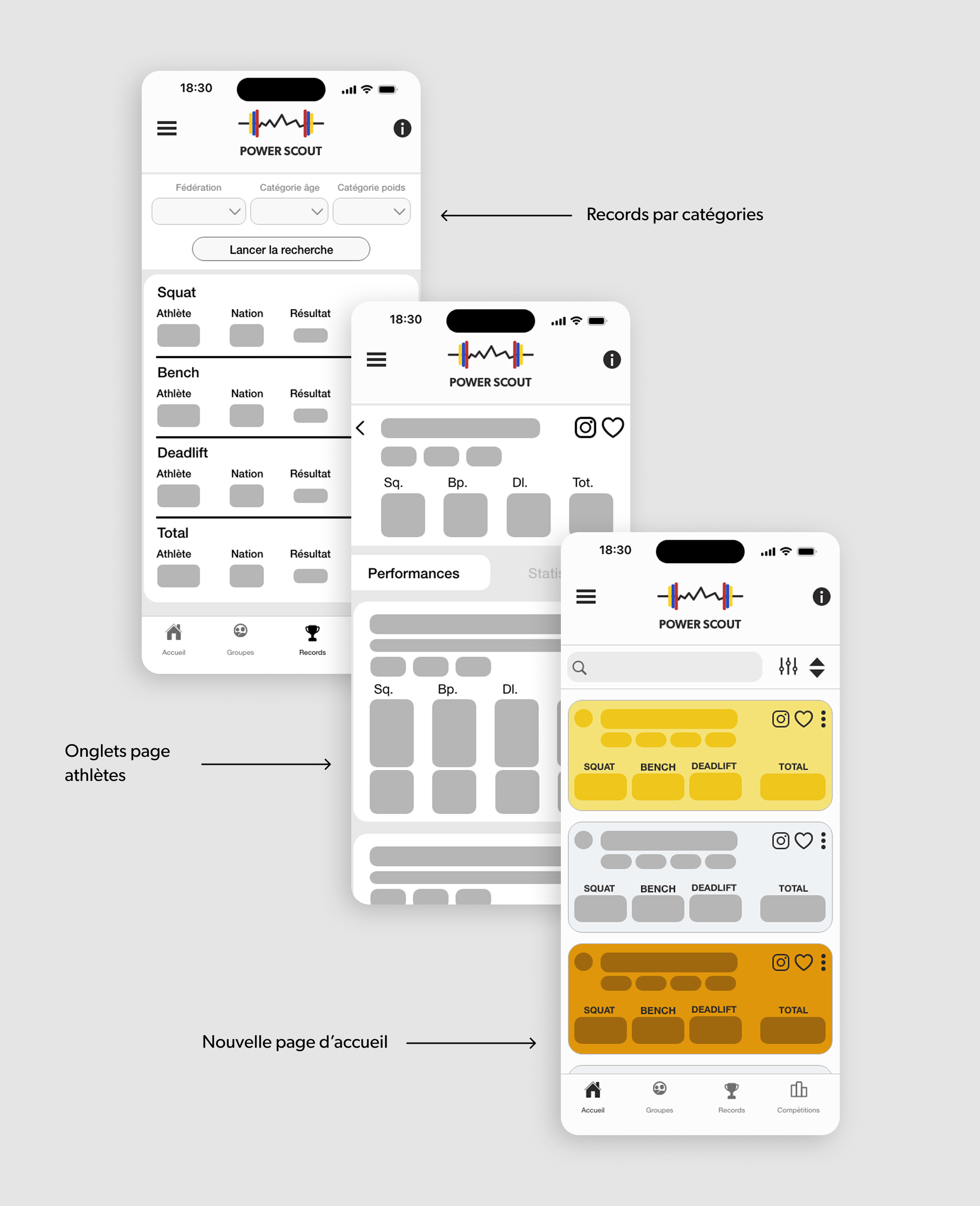 Power Scout est une application mobile destinée aux athlètes, coaches et fédérations de force athlétique (powerlifting) permettant de simplifier la gestion et l’analyse de données d’athlètes concourant aux 4 coins du monde.
