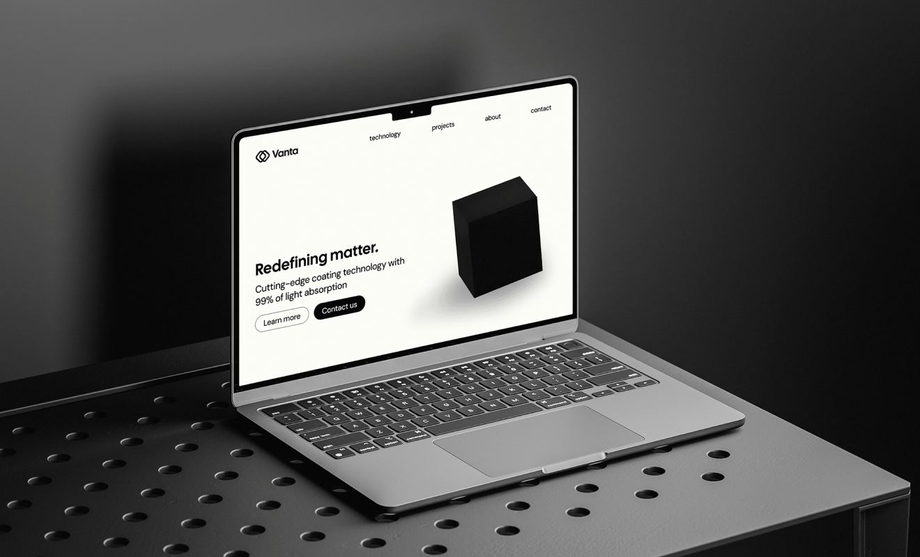 Pour ce projet, nous devons créer un univers de marque capable de retranscrire la radicalité du matériau de Vanta tout en restant accessible, en associant le côté innovant de l’entreprise avec son côté haut-de-gamme.